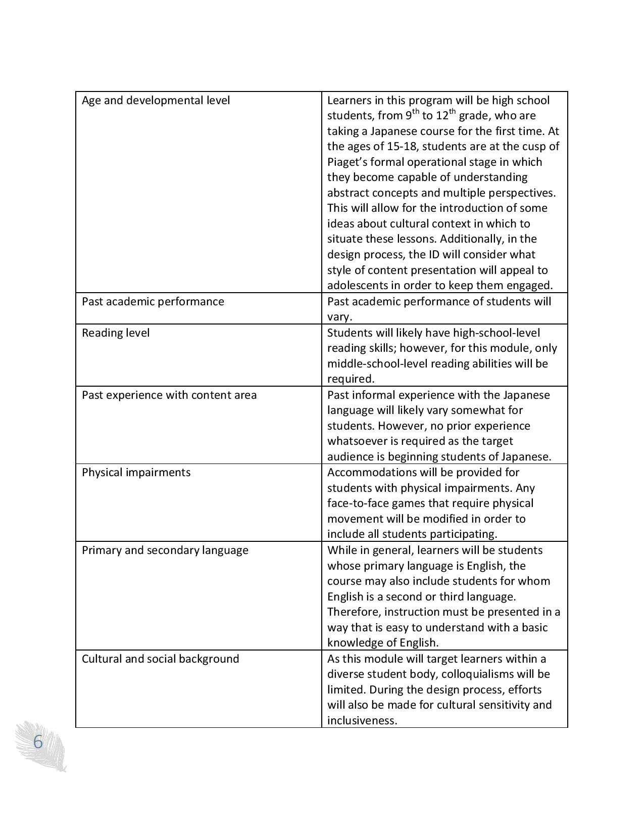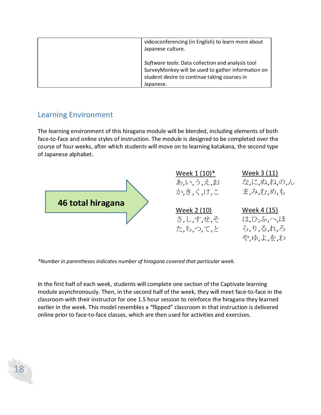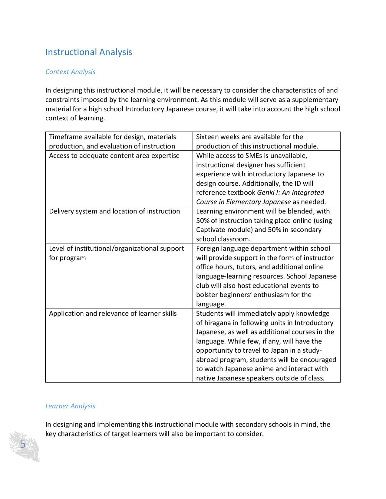 This instructional module for learning the Japanese alphabet "hiragana" incorporates learning theory into an instructional systems design approach. I developed the module using Adobe Captivate.